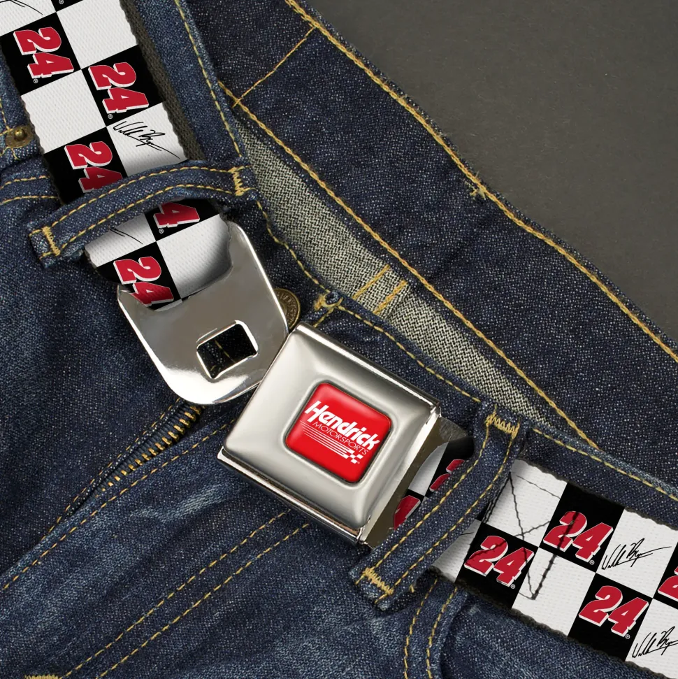 HENDRICK MOTORSPORTS Checker Logo Full Color Red/White Seatbelt Belt – William Byron Autograph and #24 Checker Logo Black/White/Red Webbing