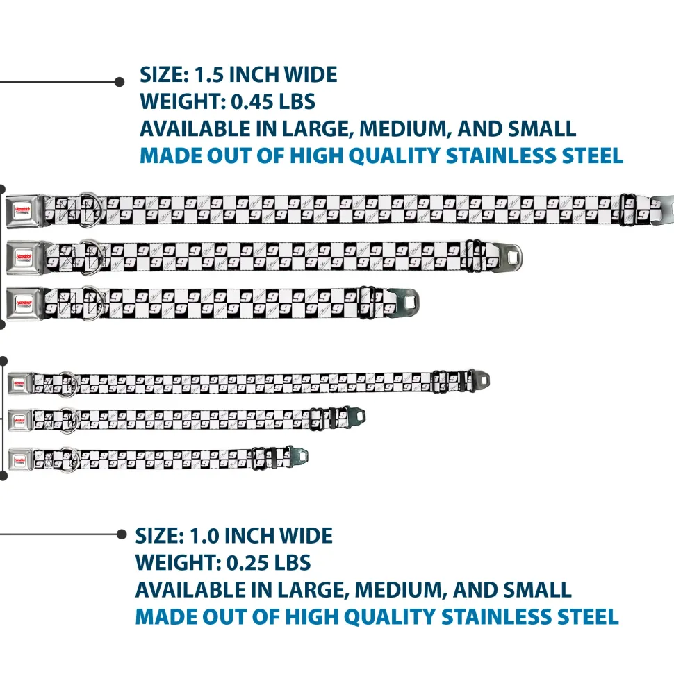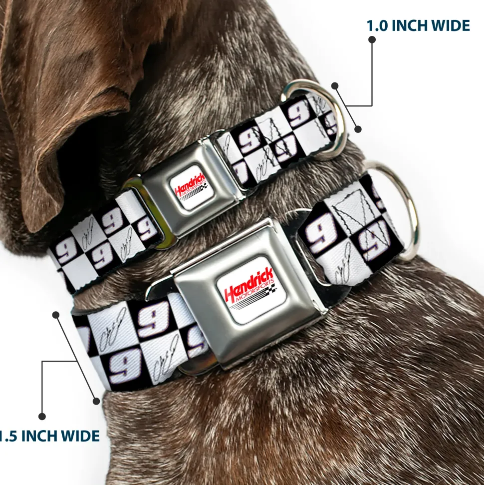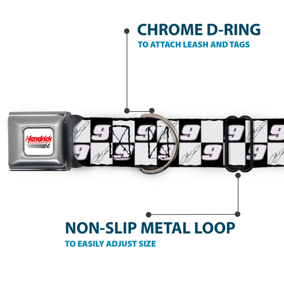 Your dog will be the talk of the town when people notice they’re wearing this awesome SeatBelt Dog Collar! Made from high-density polyester and durable steel components, this collar is built to last. It features beautiful vibrant artwork. The buckle is a miniature authentic SeatBelt Buckle, so you press the center button to release the clasp. This product is assembled in the USA by Buckle-Down Inc. and officially licensed by Hendrick Motorsports.
