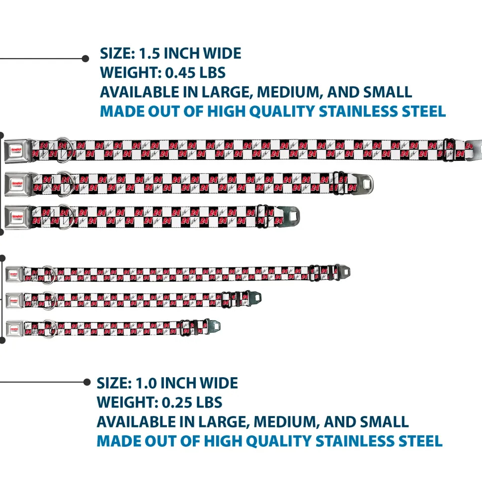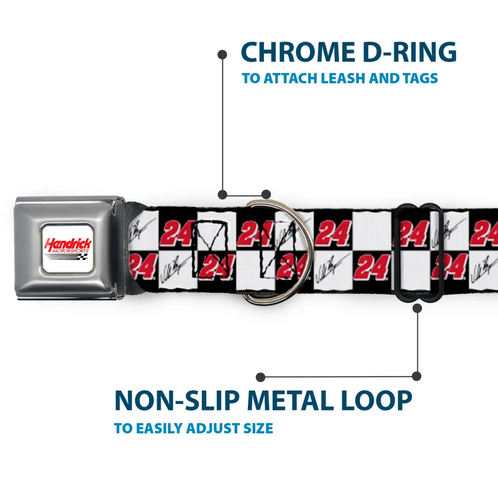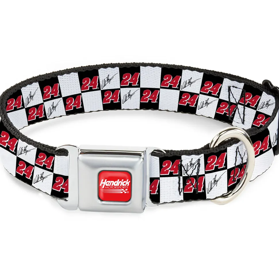 Your dog will be the talk of the town when people notice they’re wearing this awesome SeatBelt Dog Collar! Made from high-density polyester and durable steel components, this collar is built to last. It features beautiful vibrant artwork. The buckle is a miniature authentic SeatBelt Buckle, so you press the center button to release the clasp. This product is assembled in the USA by Buckle-Down Inc. and officially licensed by Hendrick Motorsports.