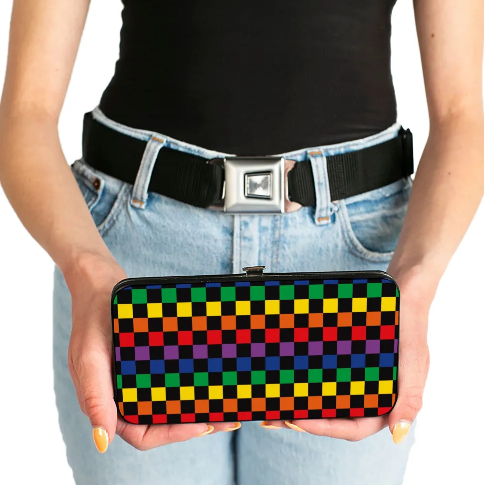 Hinged Wallet - Checker Black Rainbow Multi Color