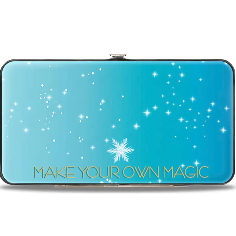 Hinged Wallet - Frozen Elsa Letting It Go Transformation Blocks + MAKE YOUR OWN MAGIC Stars Aqua White Gold