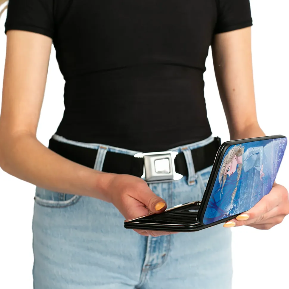 You’re going to love this wallet! Stylish and sleek, this hinged wallet is made from vegan leather and stainless steel. It measures 7.0×4.0x0.75 Inches, with 2 billfolds, 4 card slots, and a windowed ID holder. The gorgeous artwork is applied using the latest printing technology, so it will hold up well over time. This product is Made in USA by Buckle-Down, Inc. and Officially Licensed by Disney.