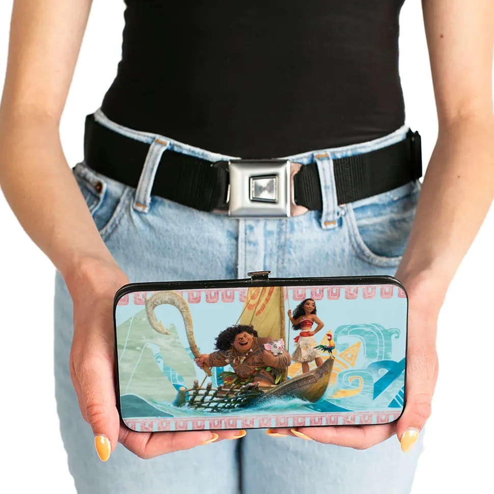 Hinged Wallet – Moana Voyage Group Pose Tribal Icons Collage Blues Multi Color