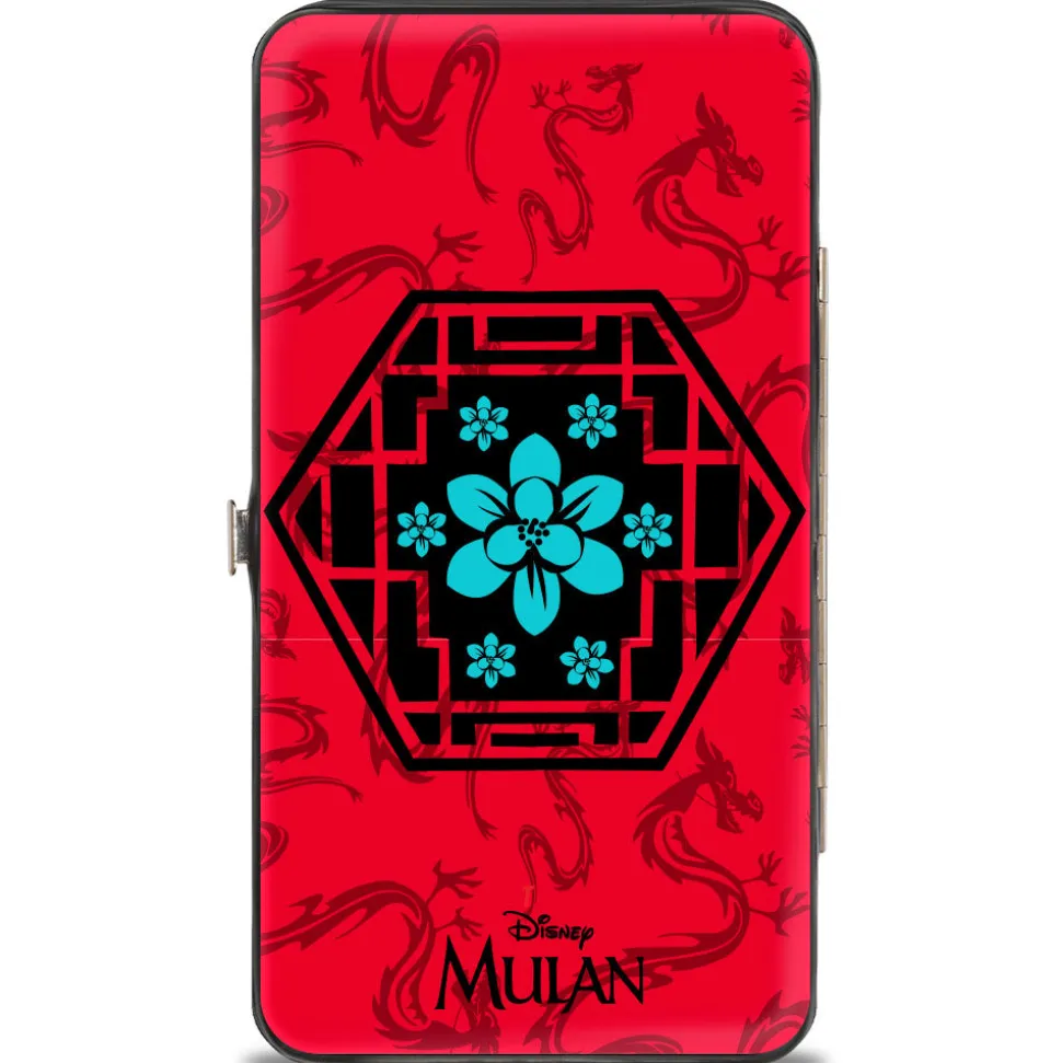 Hinged Wallet - Mulan Flower Lattice Mushu Icons Scattered Reds Black Blue