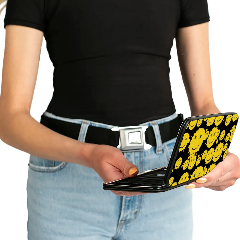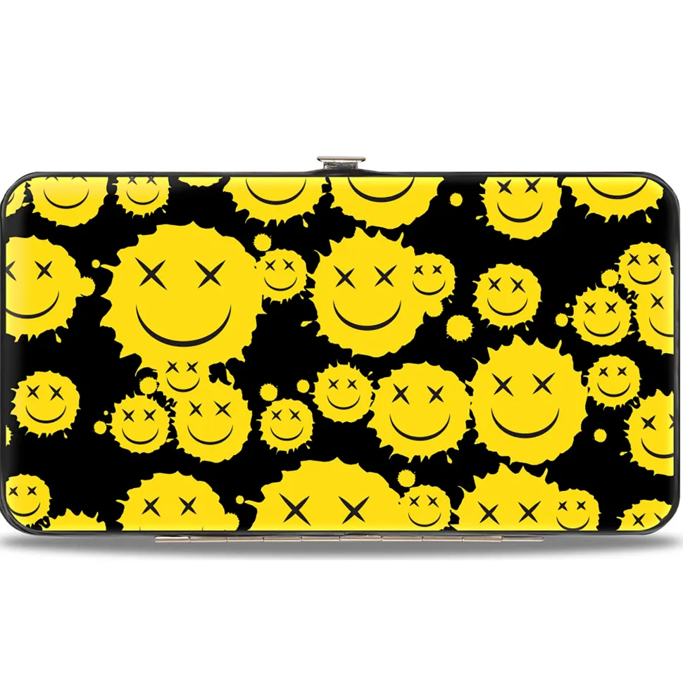 Hinged Wallet – Smiley Face Splatter Scattered Black/Yellow