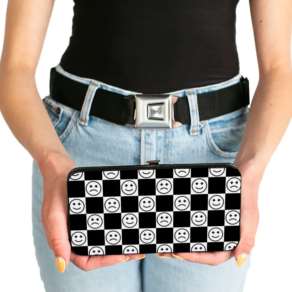Hinged Wallet - Smiley Sad Face Checker Black/White