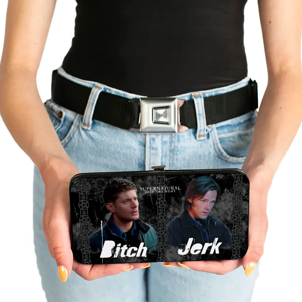 Hinged Wallet – SUPERNATURAL 4-Character Poses BITCH-JERK + IDJITS ASSBUTT Black Grays White