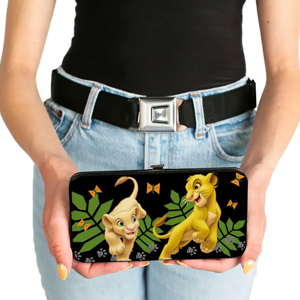 Hinged Wallet – The Lion King Young Simba & Nala Playing Pose + HAKUNA MATATA Leaves Butterflies Paws Black White Multi Color