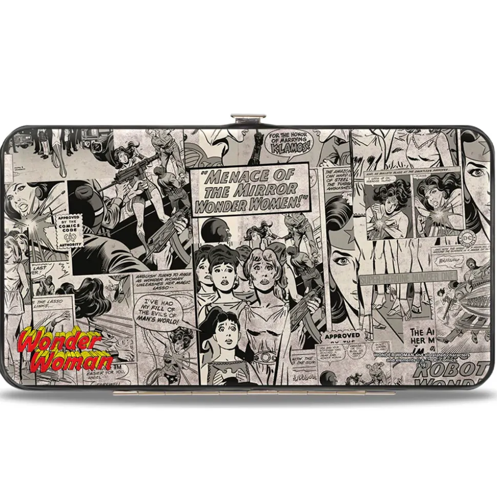 Hinged Wallet - Wonder Woman Logo Comic Scenes Grays Blue Red Yellow