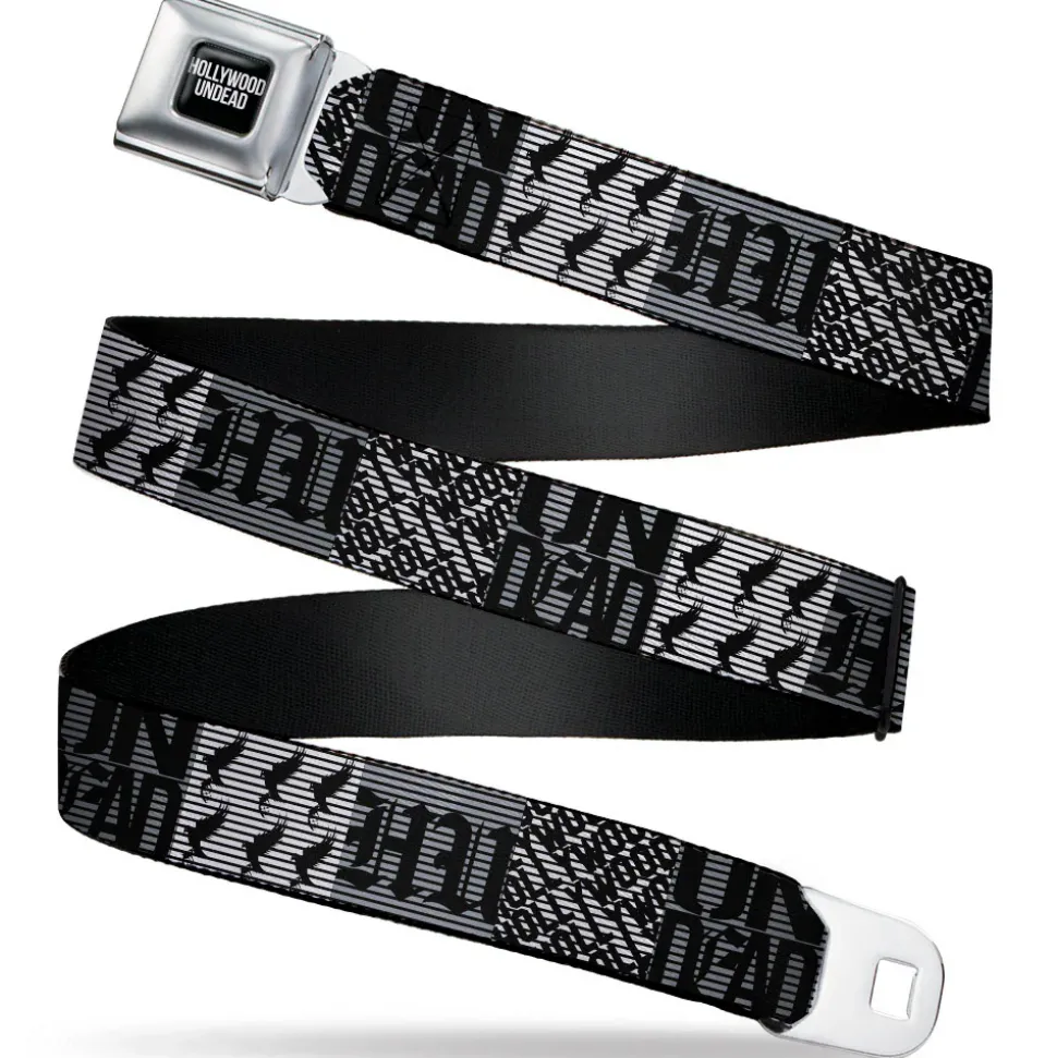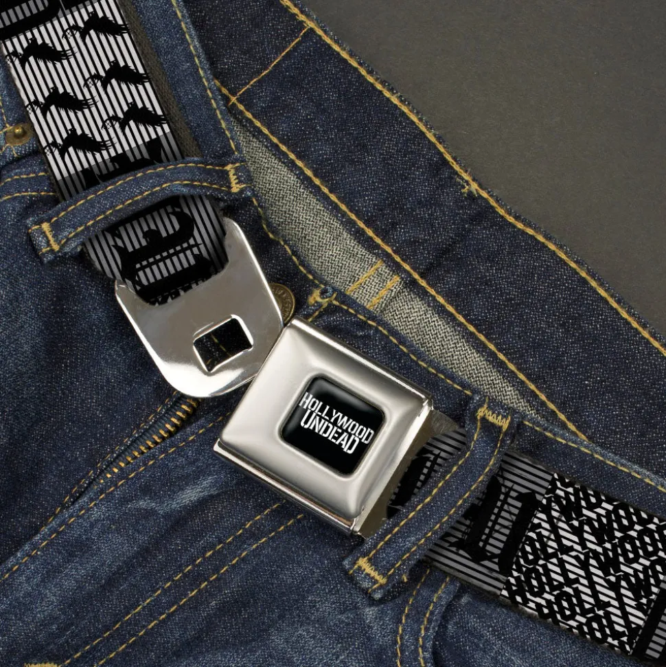 HOLLYWOOD UNDEAD Text Logo Full Color Black/White Seatbelt Belt – Hollywood Undead Logo Blocks Grays/Black Webbing