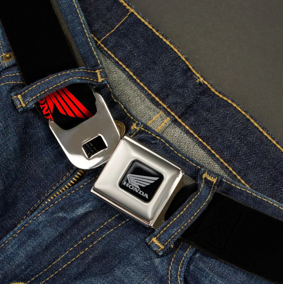 Honda Motorcycle Black Silver Seatbelt Belt – HONDA Motorcycle Logo Black/Red Webbing