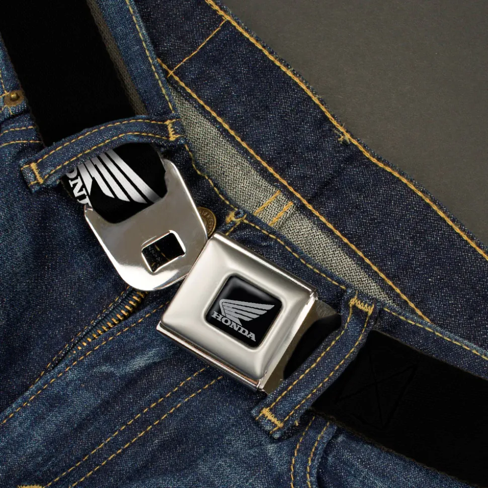 Honda Motorcycle Black Silver Seatbelt Belt – HONDA Motorcycle Logo Black/White Webbing