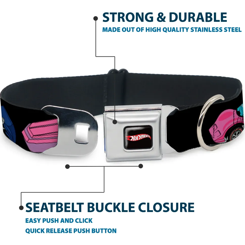 Your dog will be the talk of the town when people notice they’re wearing this awesome SeatBelt Dog Collar! Made from high-density polyester and durable steel components, this collar is built to last. It features beautiful vibrant artwork. The buckle is a miniature authentic SeatBelt Buckle, so you press the center button to release the clasp. This product is assembled in the USA by Buckle-Down Inc. and officially licensed by Mattel.
