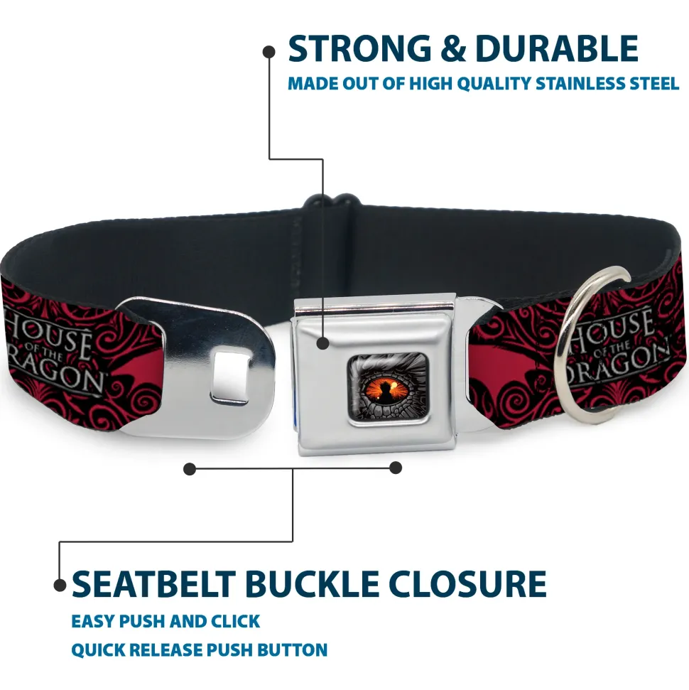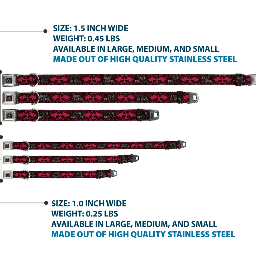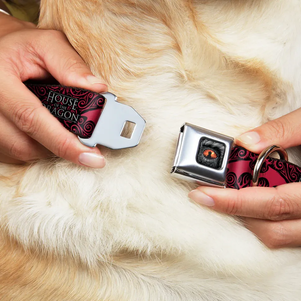 Your dog will be the talk of the town when people notice they’re wearing this awesome SeatBelt Dog Collar! Made from high-density polyester and durable steel components, this collar is built to last. It features beautiful vibrant artwork. The buckle is a miniature authentic SeatBelt Buckle, so you press the center button to release the clasp. This product is Made in USA by Buckle-Down Inc. and officially licensed by House of the Dragon.