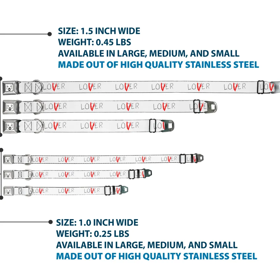 Your dog will be the talk of the town when people notice they’re wearing this awesome SeatBelt Dog Collar! Made from high-density polyester and durable steel components, this collar is built to last. It features beautiful vibrant artwork. The buckle is a miniature authentic SeatBelt Buckle, so you press the center button to release the clasp. This product is Made in USA by Buckle-Down Inc. and officially licensed by Warner Bros. Horror Movies.