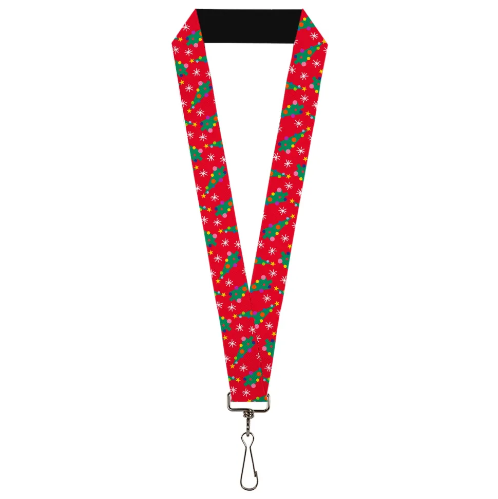 Lanyard – 1.0" – Festive Holiday Christmas Trees Scattered Red/Multi Color