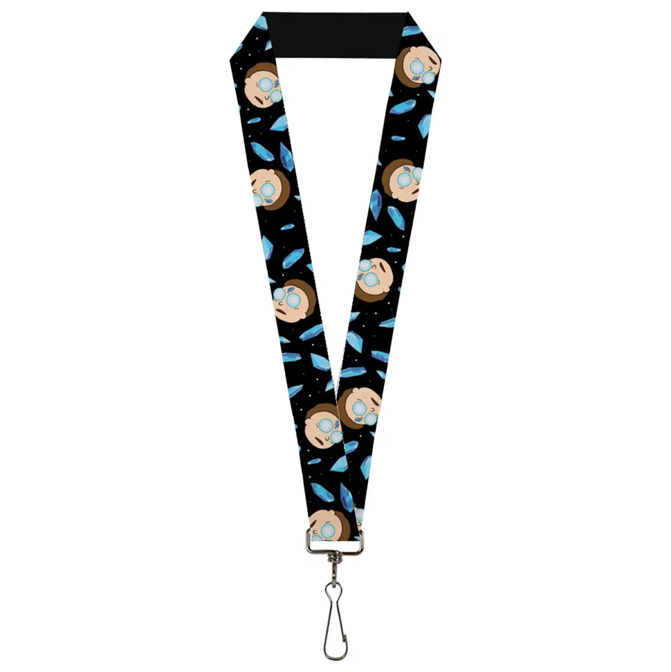 Lanyard – 1.0" – Rick and Morty Death Crystals and Morty Expression Black/Blues