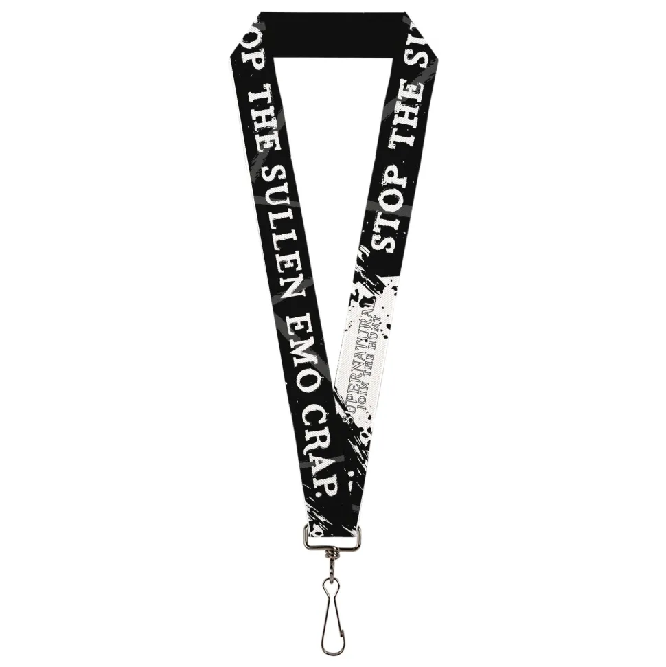 Lanyard – 1.0" – SUPERNATURAL Title Logo STOP WITH THE SULLEN EMO CRAP Quote Black/White
