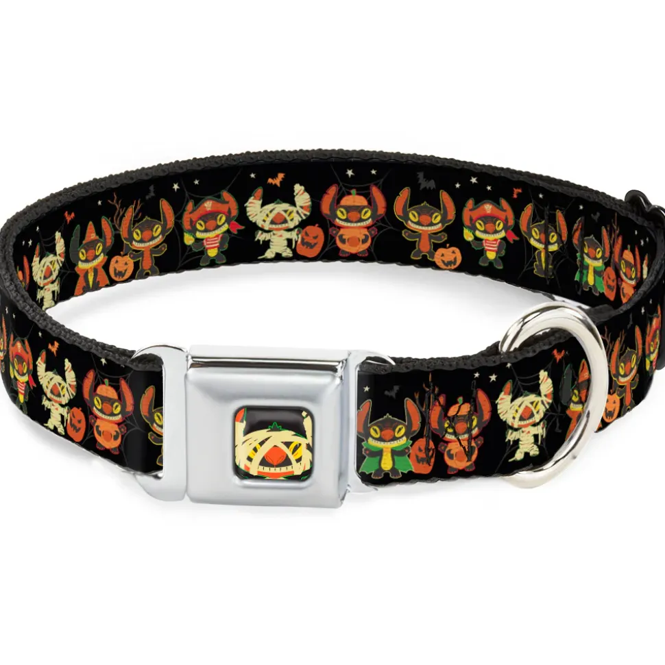 Lilo and Stitch Holiday Halloween Stitch Mummy Face Full Color Black Seatbelt Buckle Collar – Lilo and Stitch Halloween Stitch Dress Up Poses Black