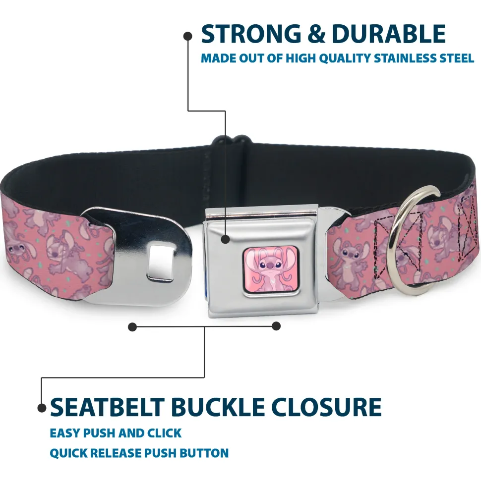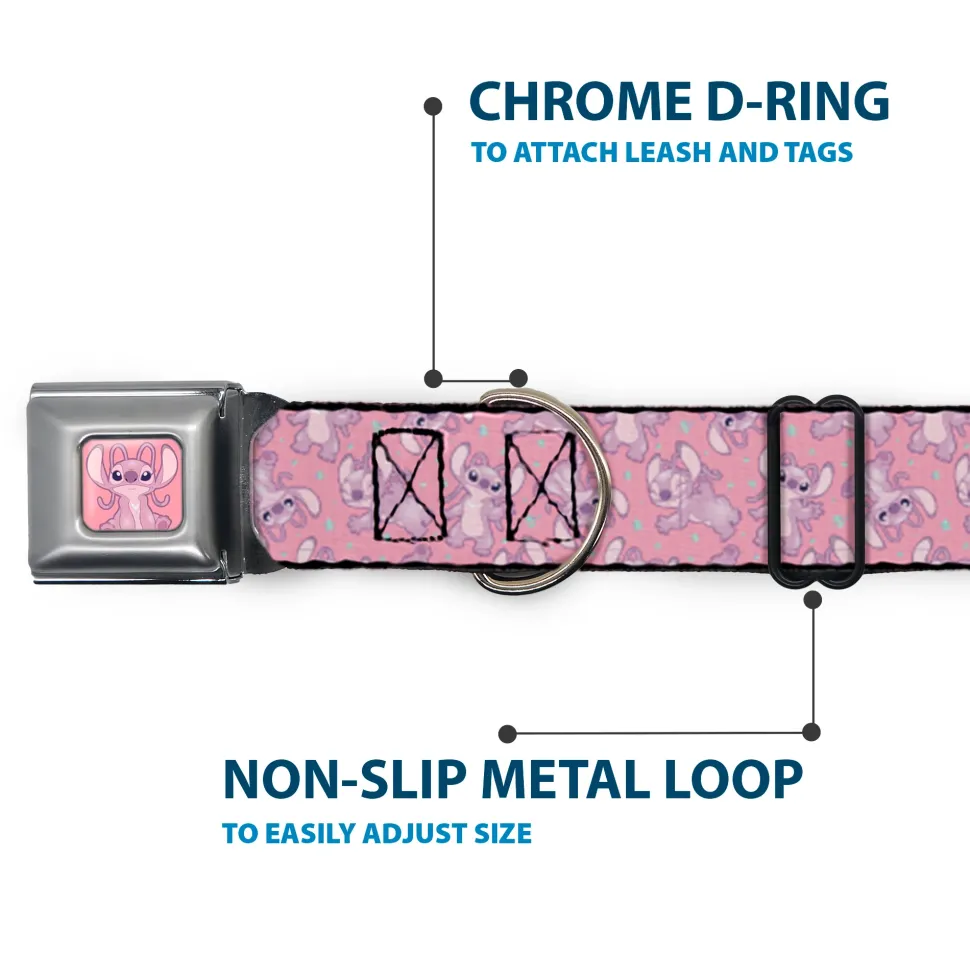 Lilo & Stitch Angel Sitting Pose Full Color Pink Seatbelt Buckle Collar – Lilo & Stitch Angel Poses Scattered Pinks