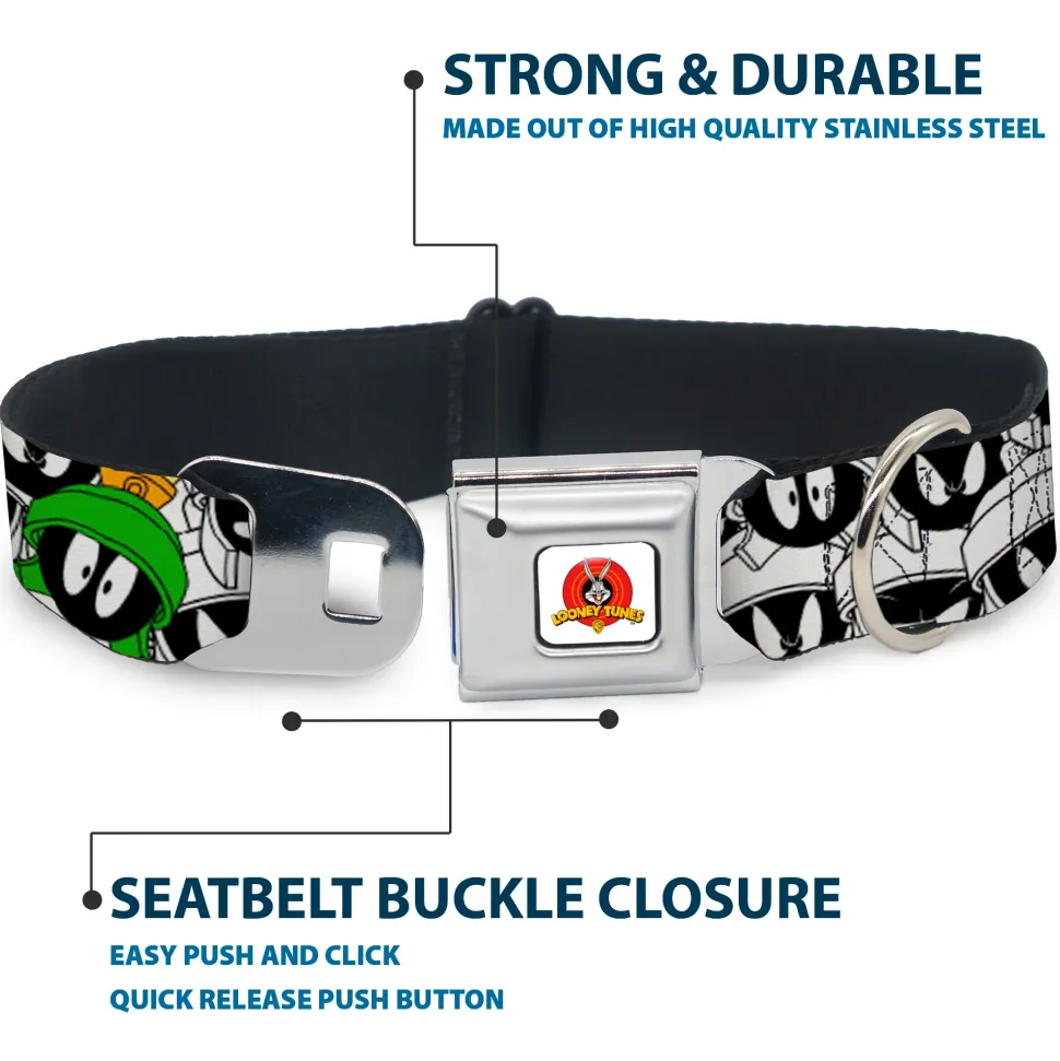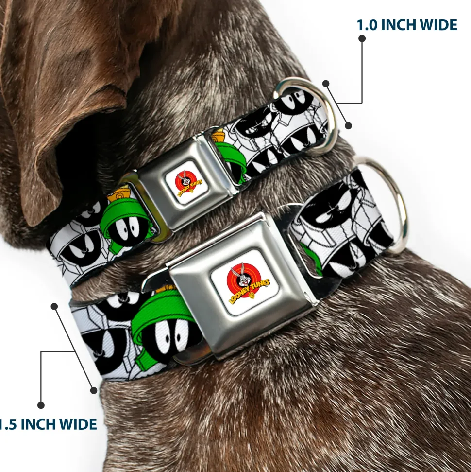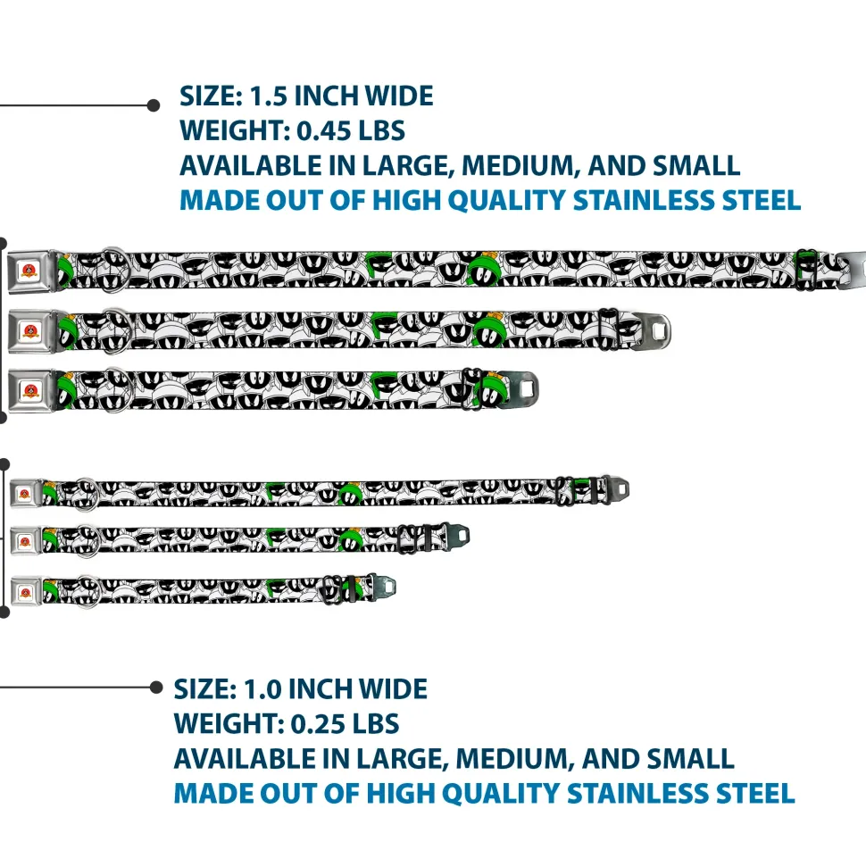 Looney Tunes Logo White Seatbelt Buckle Collar – Marvin the Martian Expressions Stacked White/Black/Green/Gold