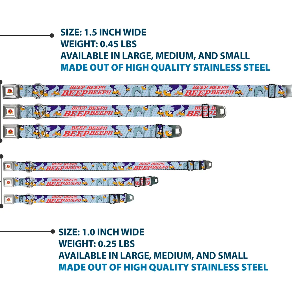Looney Tunes Logo White Seatbelt Buckle Collar – MEEP MEEP!! w/Road Runner Poses Baby Blue