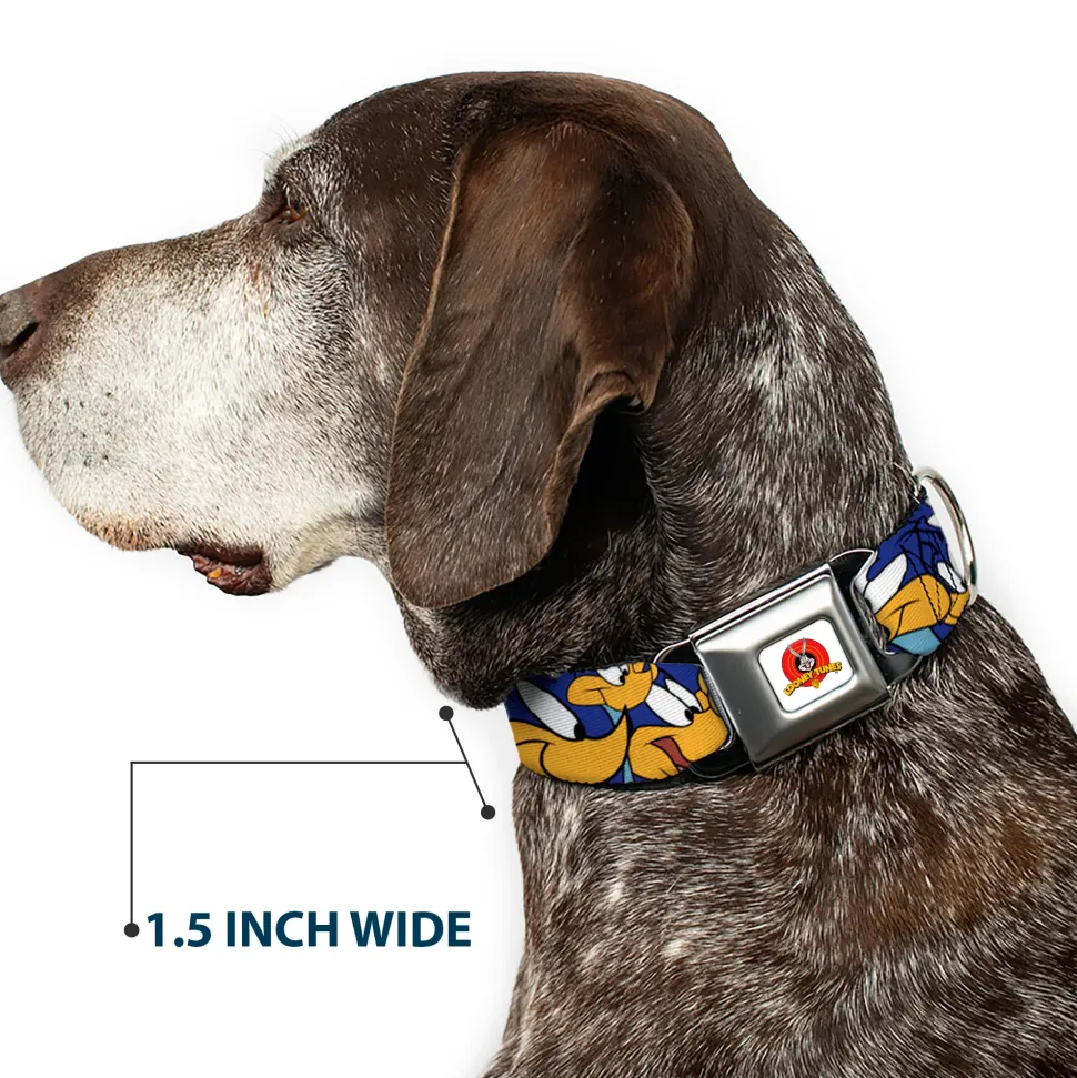 Your dog will be the talk of the town when people notice they’re wearing this awesome SeatBelt Dog Collar! Made from high-density polyester and durable steel components, this collar is built to last. It features beautiful vibrant artwork. The buckle is a miniature authentic SeatBelt Buckle, so you press the center button to release the clasp. This product is Made in USA by Buckle-Down Inc. and officially licensed by Looney Tunes.