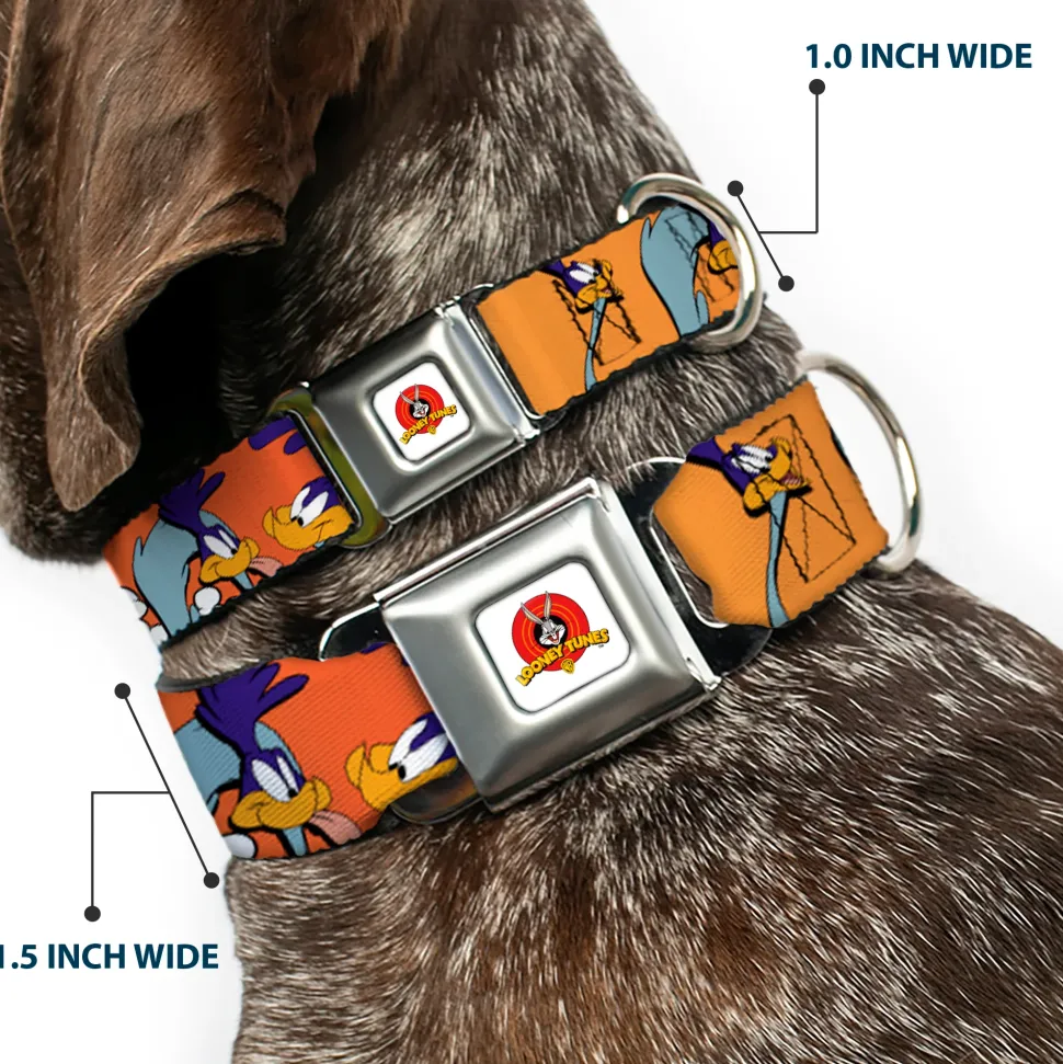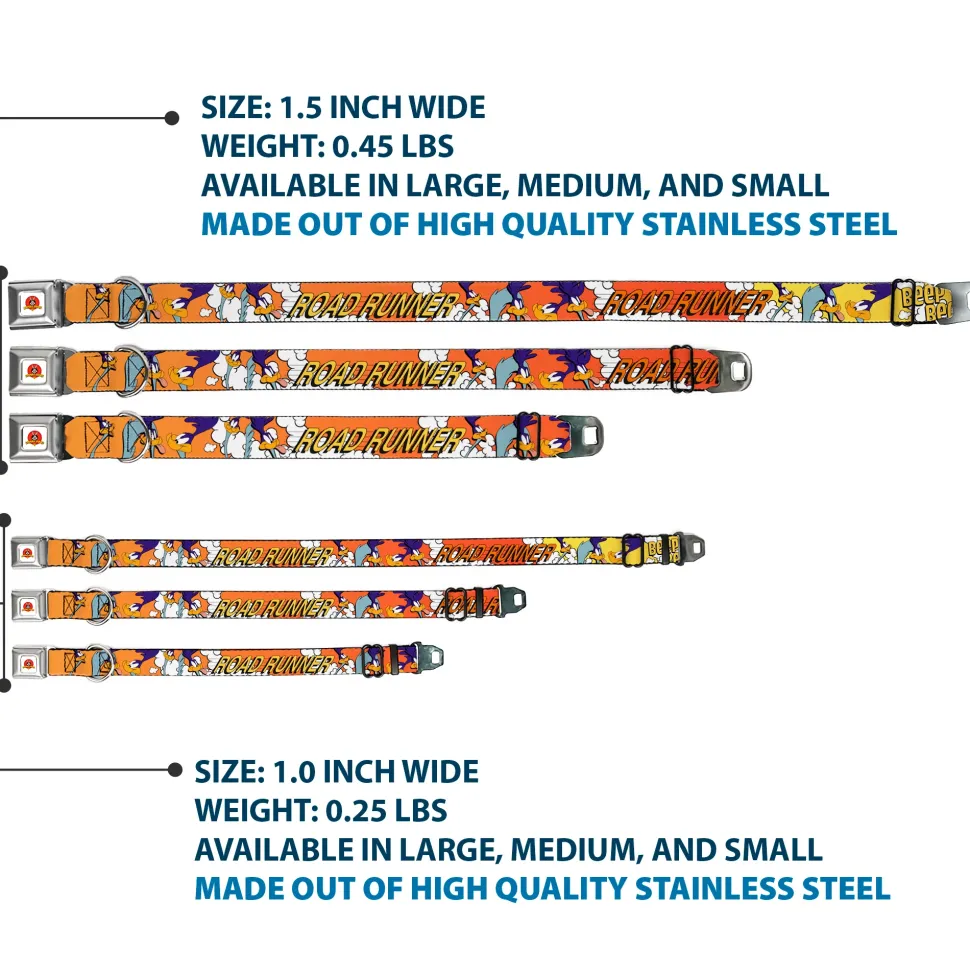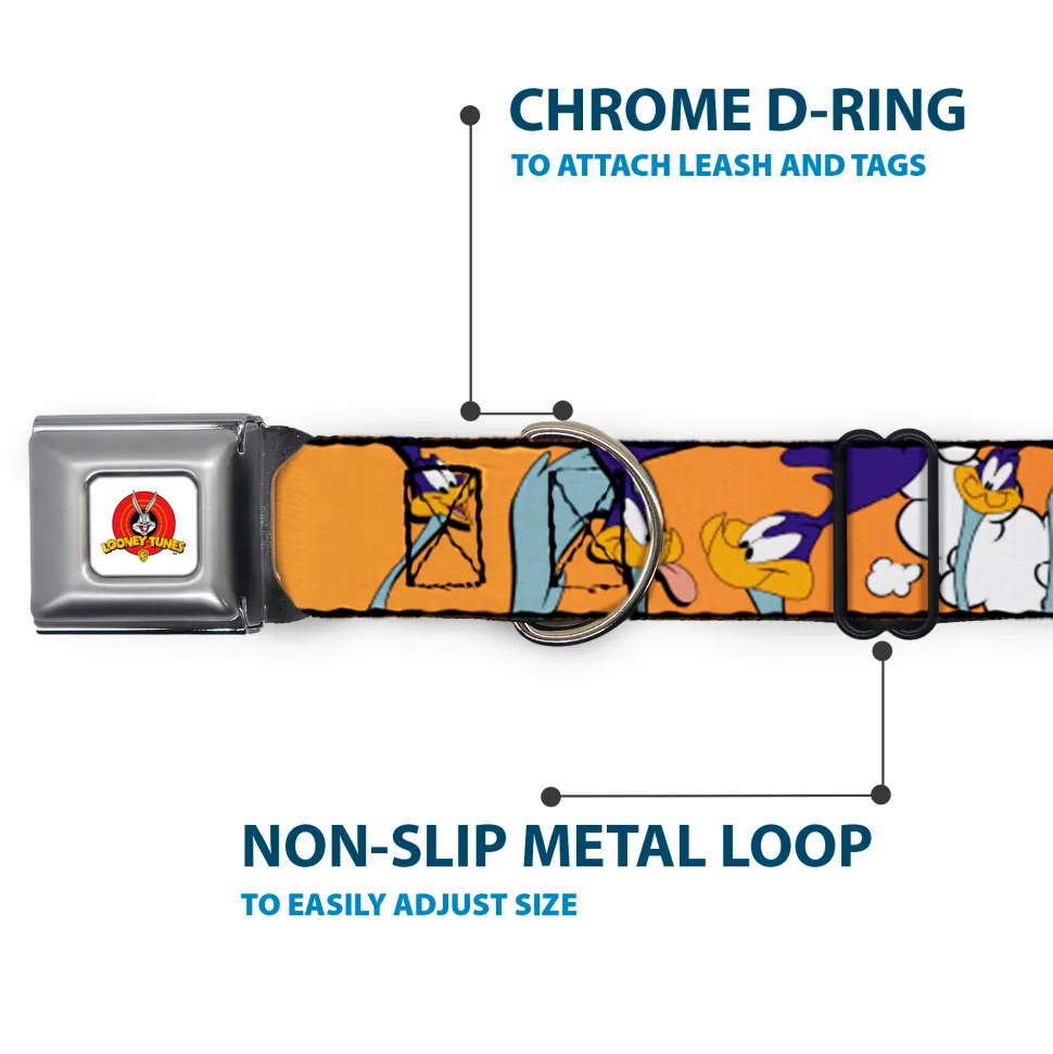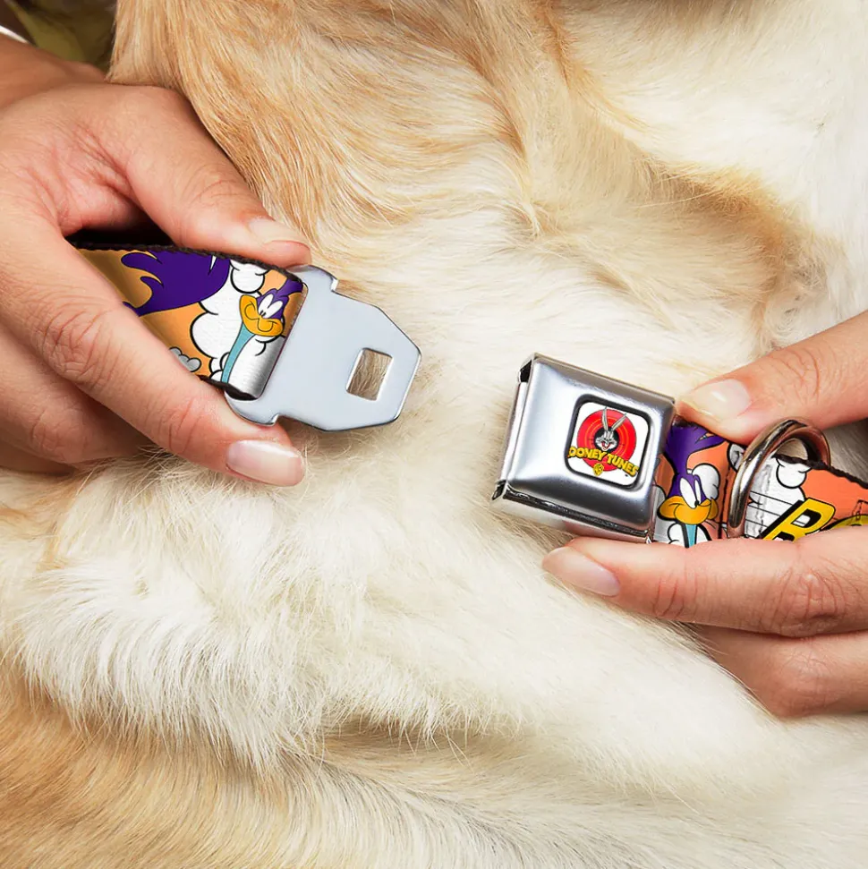 Looney Tunes Logo White Seatbelt Buckle Collar – ROAD RUNNER w/Road Runner Poses Orange
