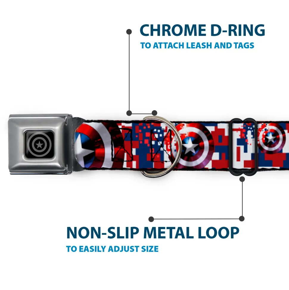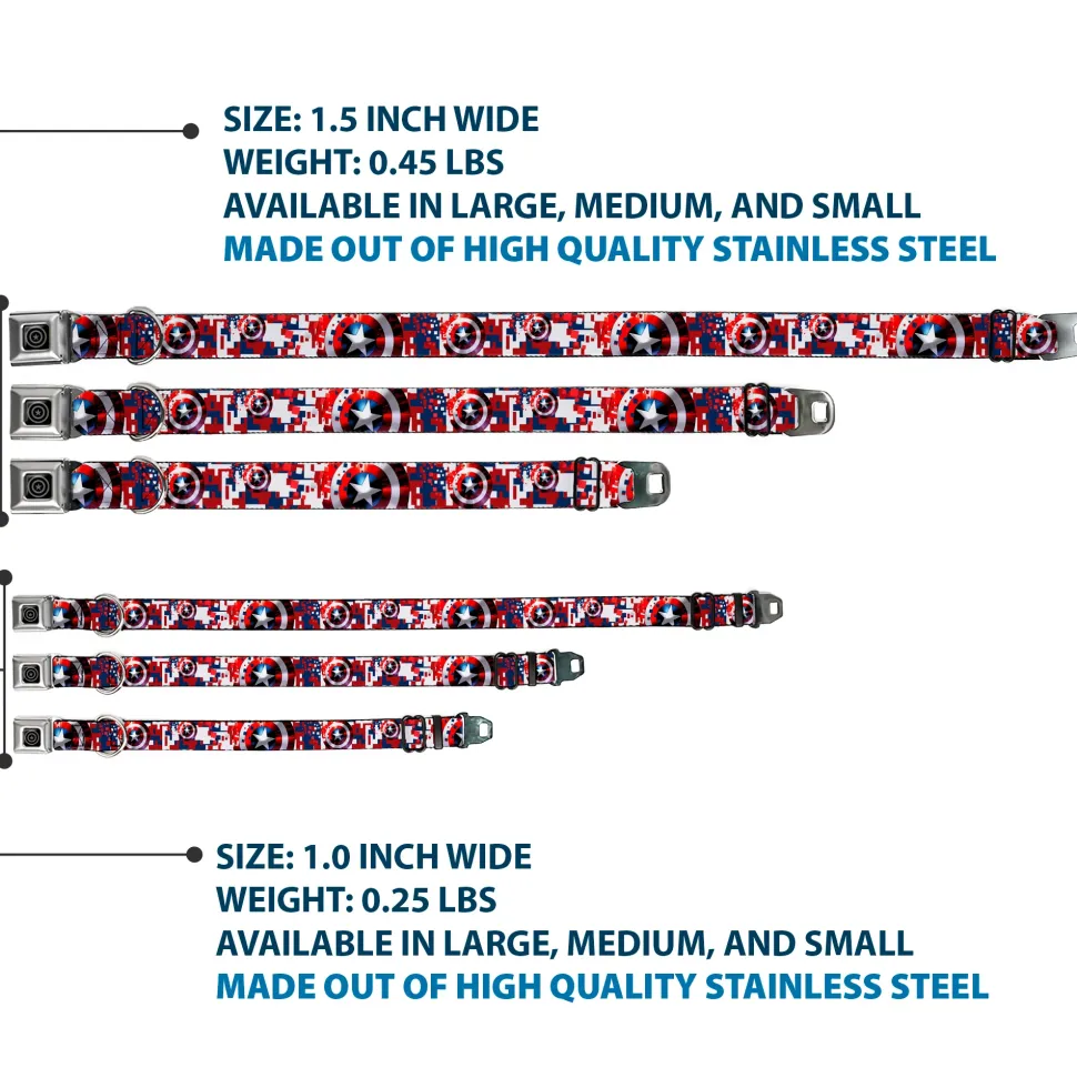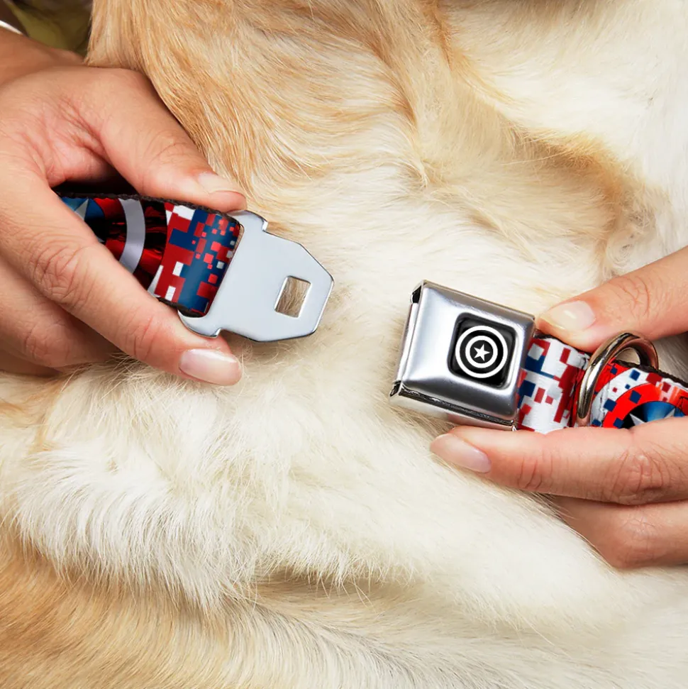 MARVEL AVENGERS Captain America Shield Black Silver Seatbelt Buckle Collar – Captain America Shield Digital Camo Blue/White/Red