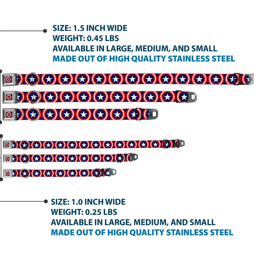 MARVEL COMICS Captain America Shield Full Color Navy Seatbelt Buckle Collar – Captain America Shield Repeat Navy