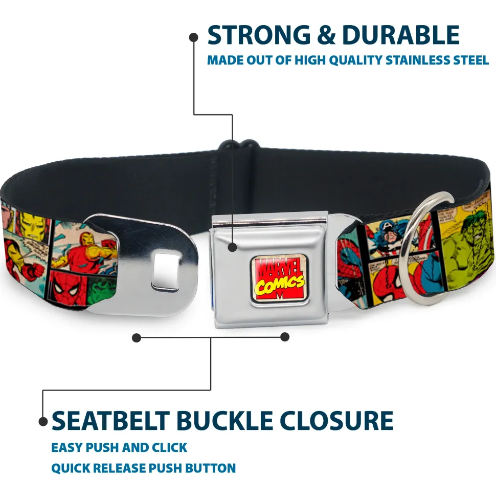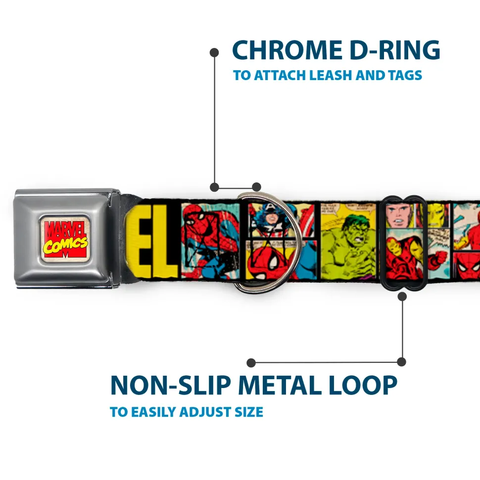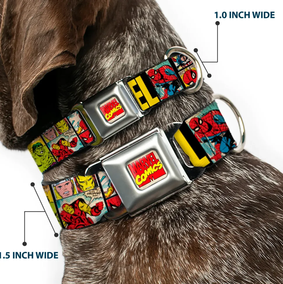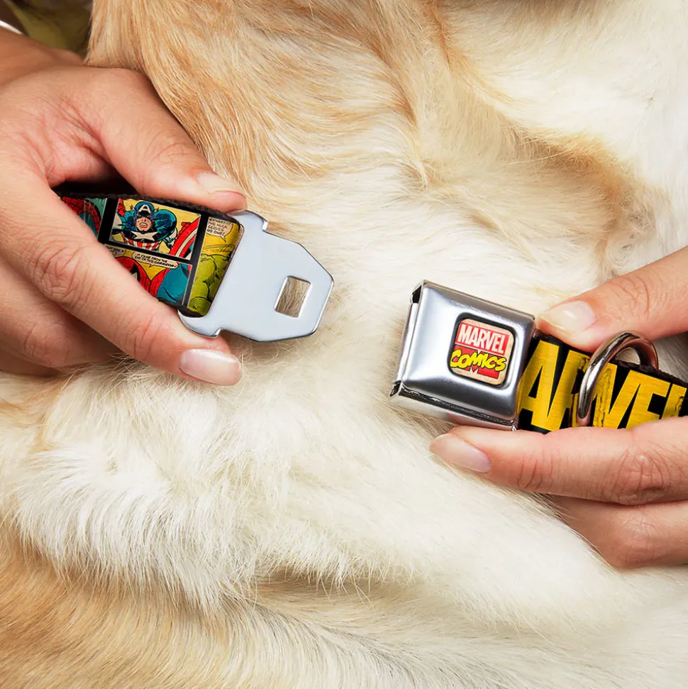 MARVEL COMICS Marvel Comics Logo Full Color Seatbelt Buckle Collar – MARVEL/Retro Comic Panels Black/Yellow