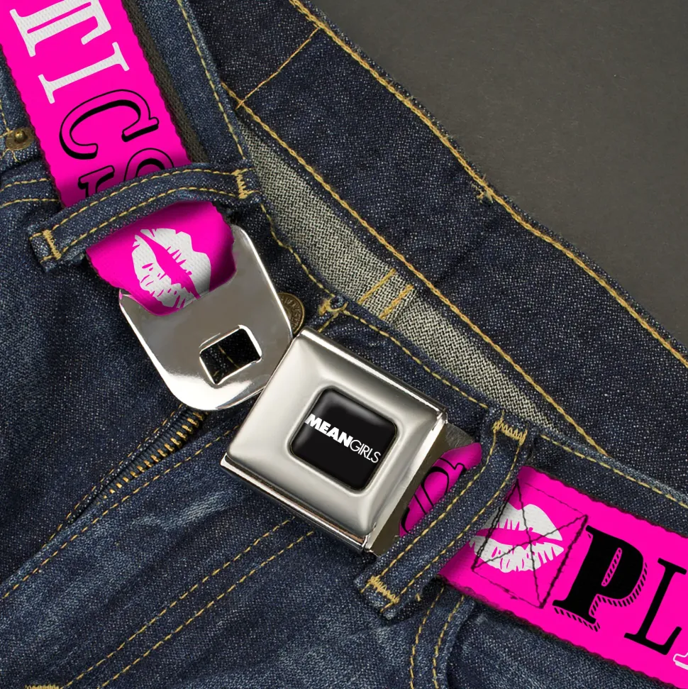 MEAN GIRLS Title Logo Full Color Black/White Seatbelt Belt – Mean Girls PLASTICS Collage Pink/Black/White Webbing