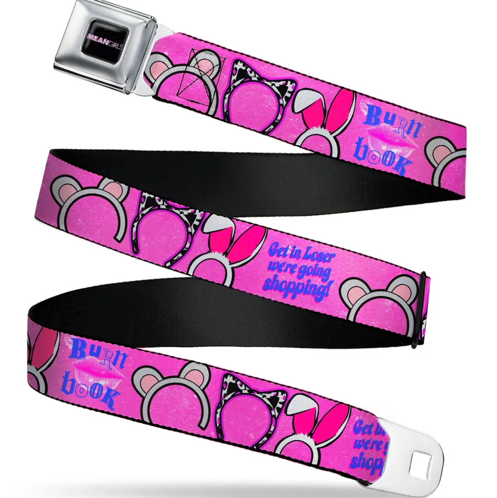 MEAN GIRLS Title Logo Full Color Black/White Seatbelt Belt – MEAN GIRLS Quotes and Plastics Animal Ears Collage Pink Webbing