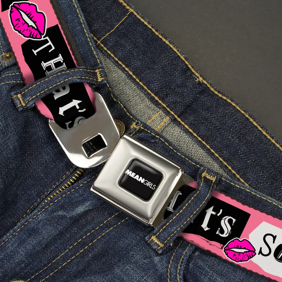 MEAN GIRLS Title Logo Full Color Black/White Seatbelt Belt – Mean Girls THAT'S SO FETCH Collage Pink/Black/White Webbing