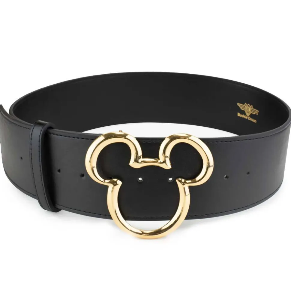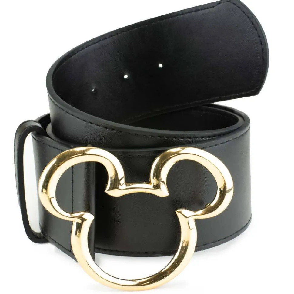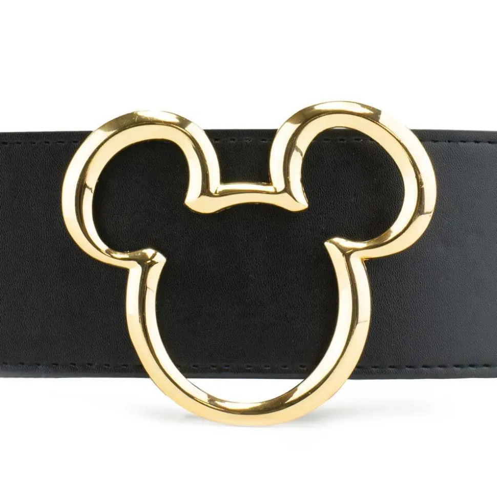 Mickey Ears Outline Gold Cast Buckle – Black PU Strap Belt