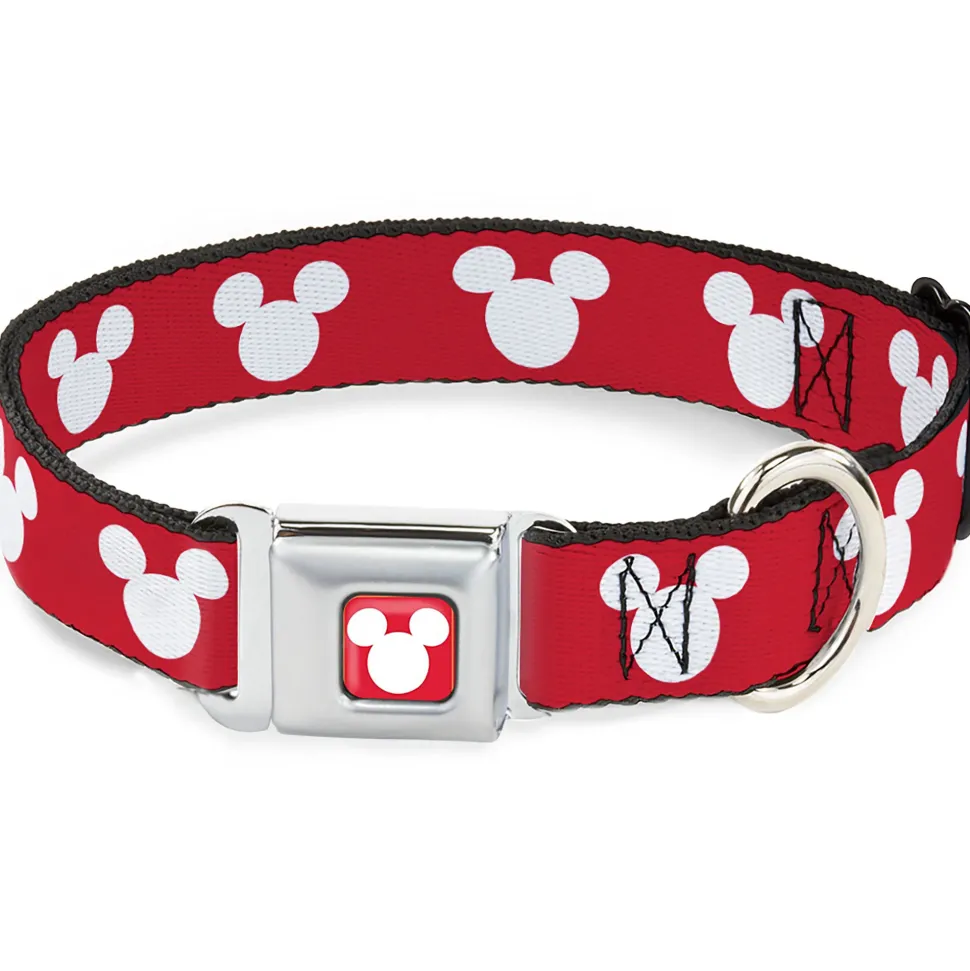 Mickey Mouse Ears Icon Full Color Red/White Seatbelt Buckle Collar – Mickey Mouse Ears Icon Red/White
