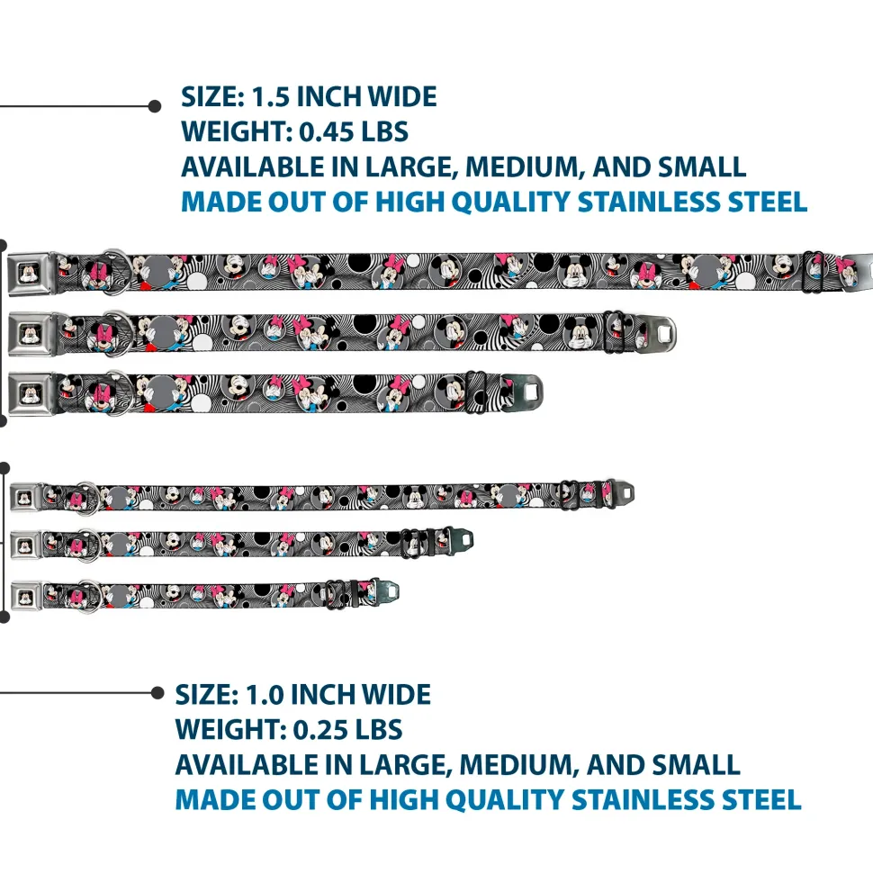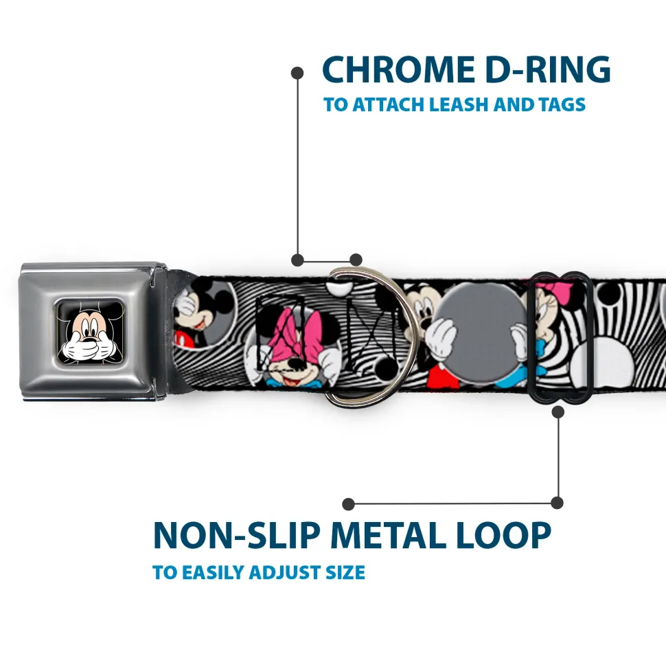 Mickey Mouse Expression3 Full Color Black Seatbelt Buckle Collar – Mickey & Minnie Peek-a-Boo Expressions Swirl Black/White