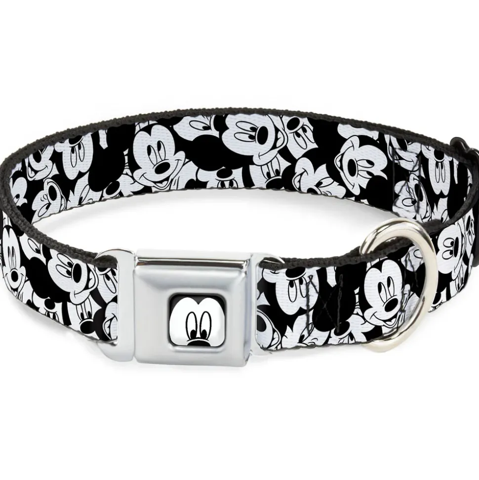 Mickey Mouse Face CLOSE-UP Full Color White Black Seatbelt Buckle Collar – Mickey Mouse Expressions Stacked White/Black