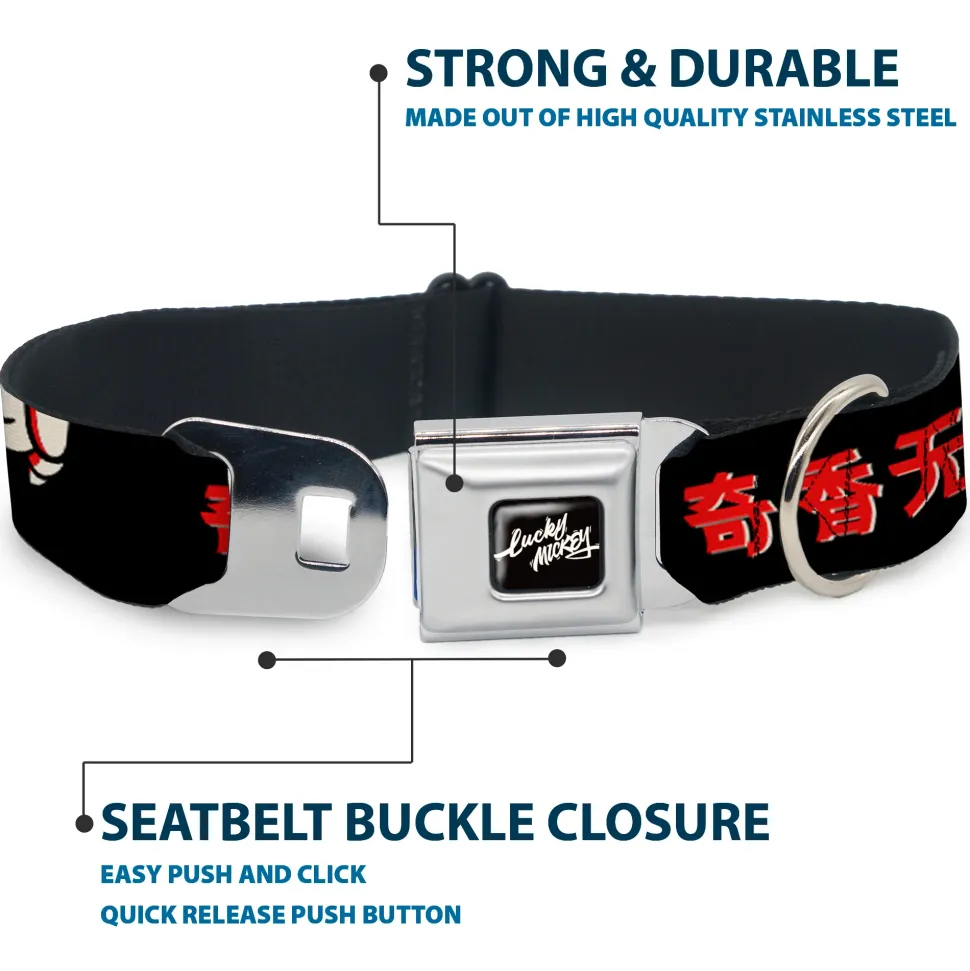 Mickey Mouse LUCKY MICKEY Script Full Color Black/White Seatbelt Buckle Collar – Mickey Mouse Smelling Pose Black/White/Reds