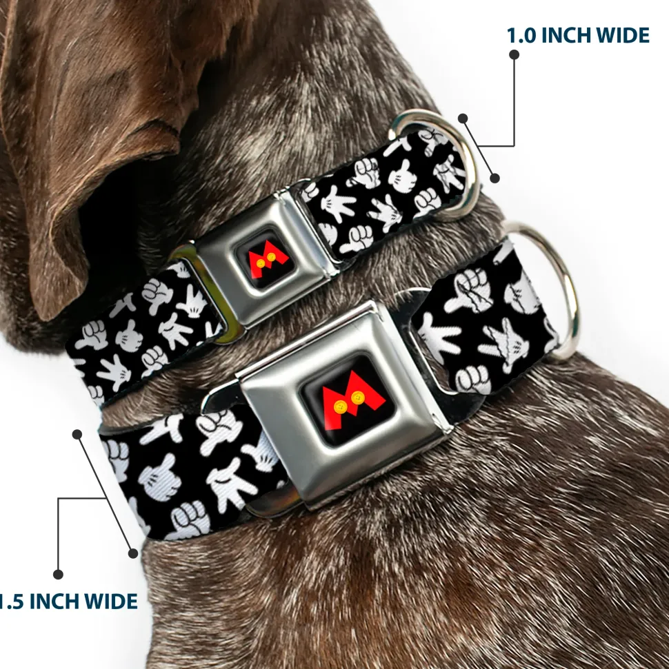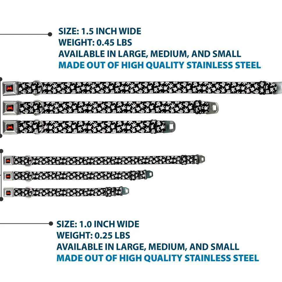 Mickey Mouse M Icon Full Color Black/Red/Yellow Seatbelt Buckle Collar – Mickey Mouse Hand Gestures2 Scattered Black/White