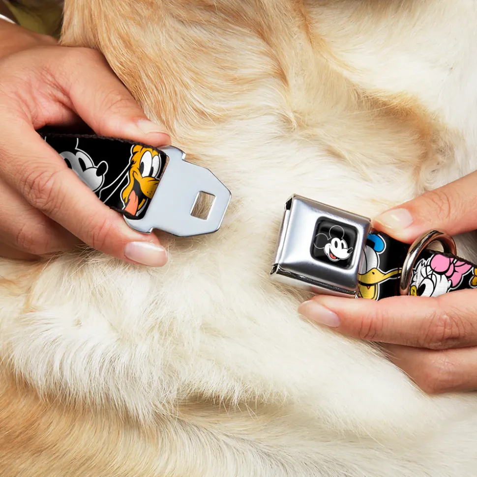 Mickey Mouse Smiling Face Full Color Black Seatbelt Buckle Collar – Disney The Sensational Six Smiling Faces Black