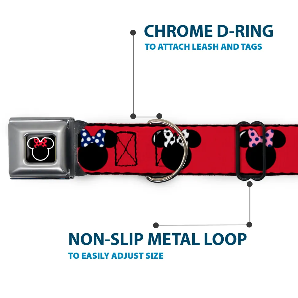 Minnie Mouse Outline Full Color Black White Red Polka Dot Seatbelt Buckle Collar – Minnie Mouse Silhouette Red/Black/Polka Dot