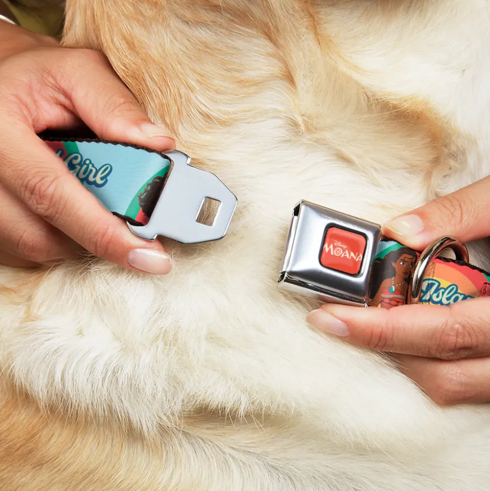 MOANA Title Logo Full Color Orange/White Seatbelt Buckle Collar – Moana ISLAND GIRL Rainbow Pose Blue/Multi Color