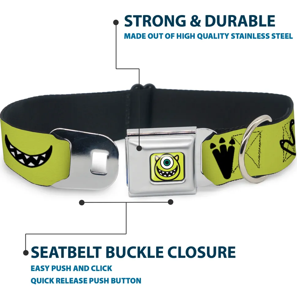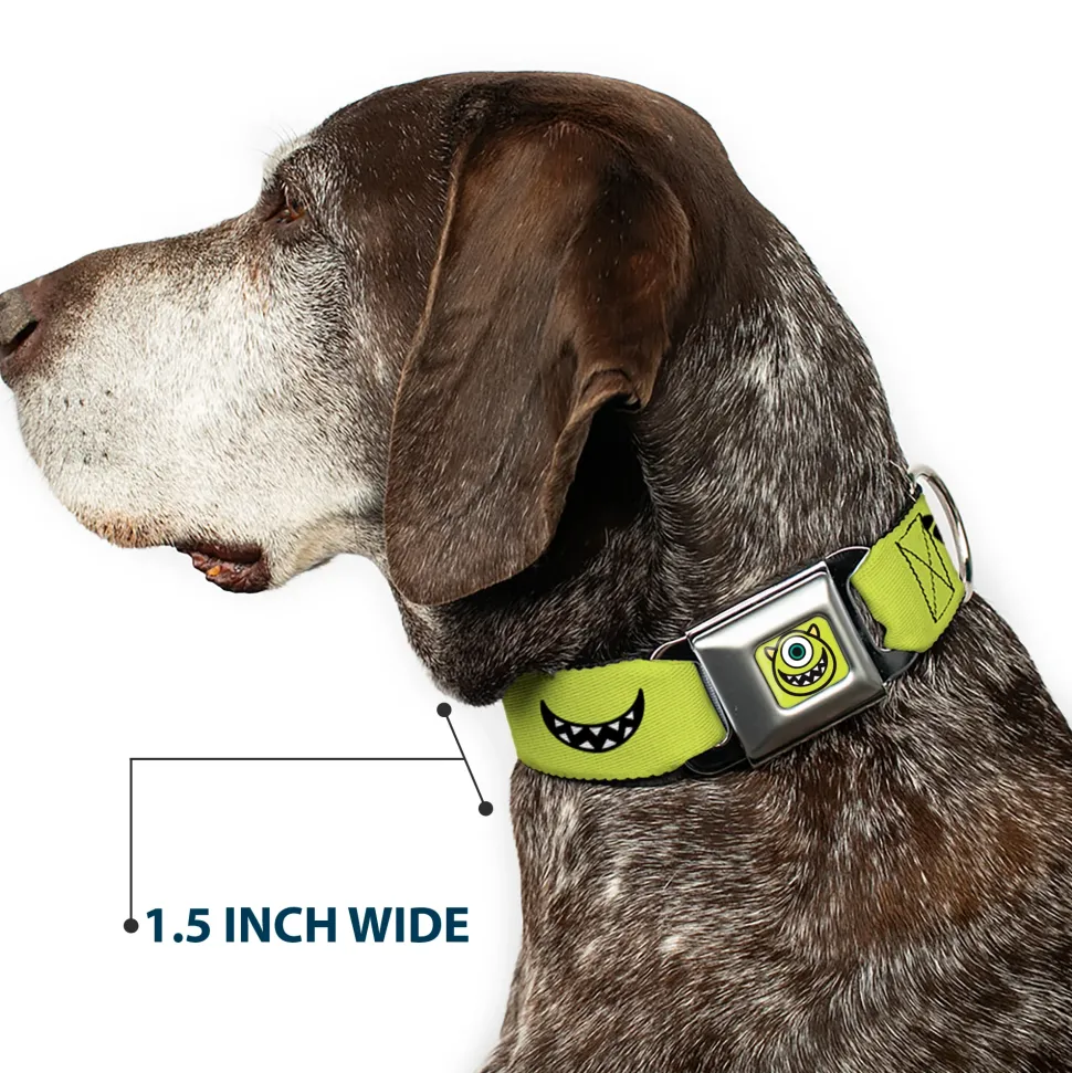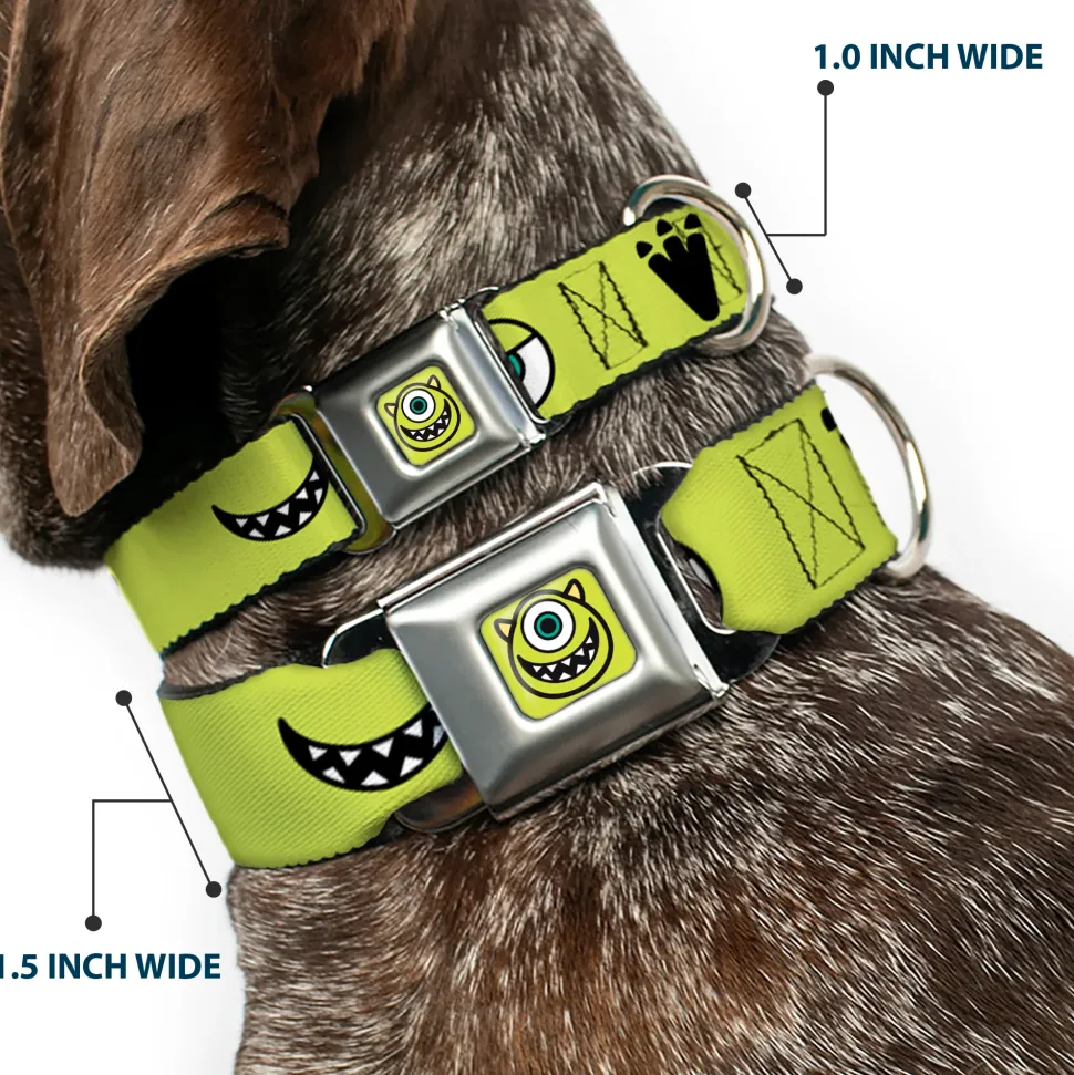 Monsters Inc. Mike Smiling Face Full Color Greens/Black/White Seatbelt Buckle Collar – Monsters Inc. Mike 4-Icons Greens/Black/White