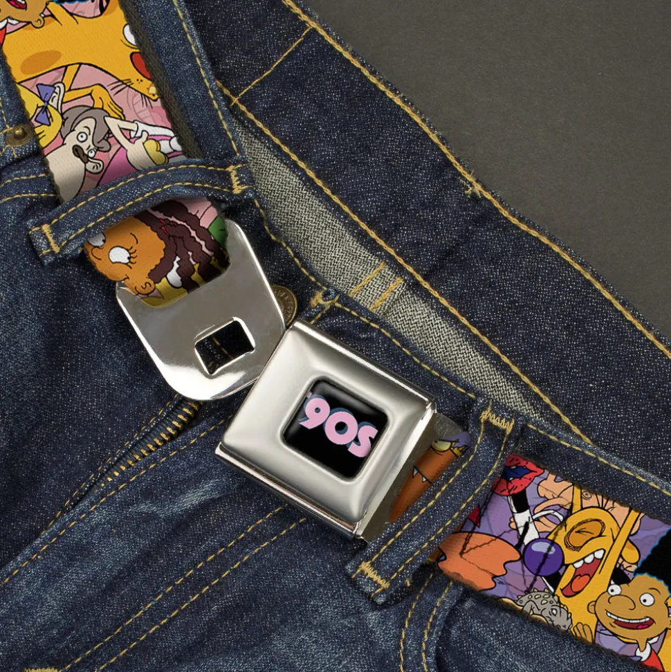 Nick 90'S Rewind Icon Full Color Black/Blue/Pink Seatbelt Belt – Nick 90's Rewind Character Mash Up Collage2 Pinks Webbing