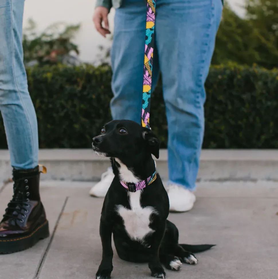 - Made from high-density polyester and durable steel components, this collar is built to last and features beautiful vibrant artwork.