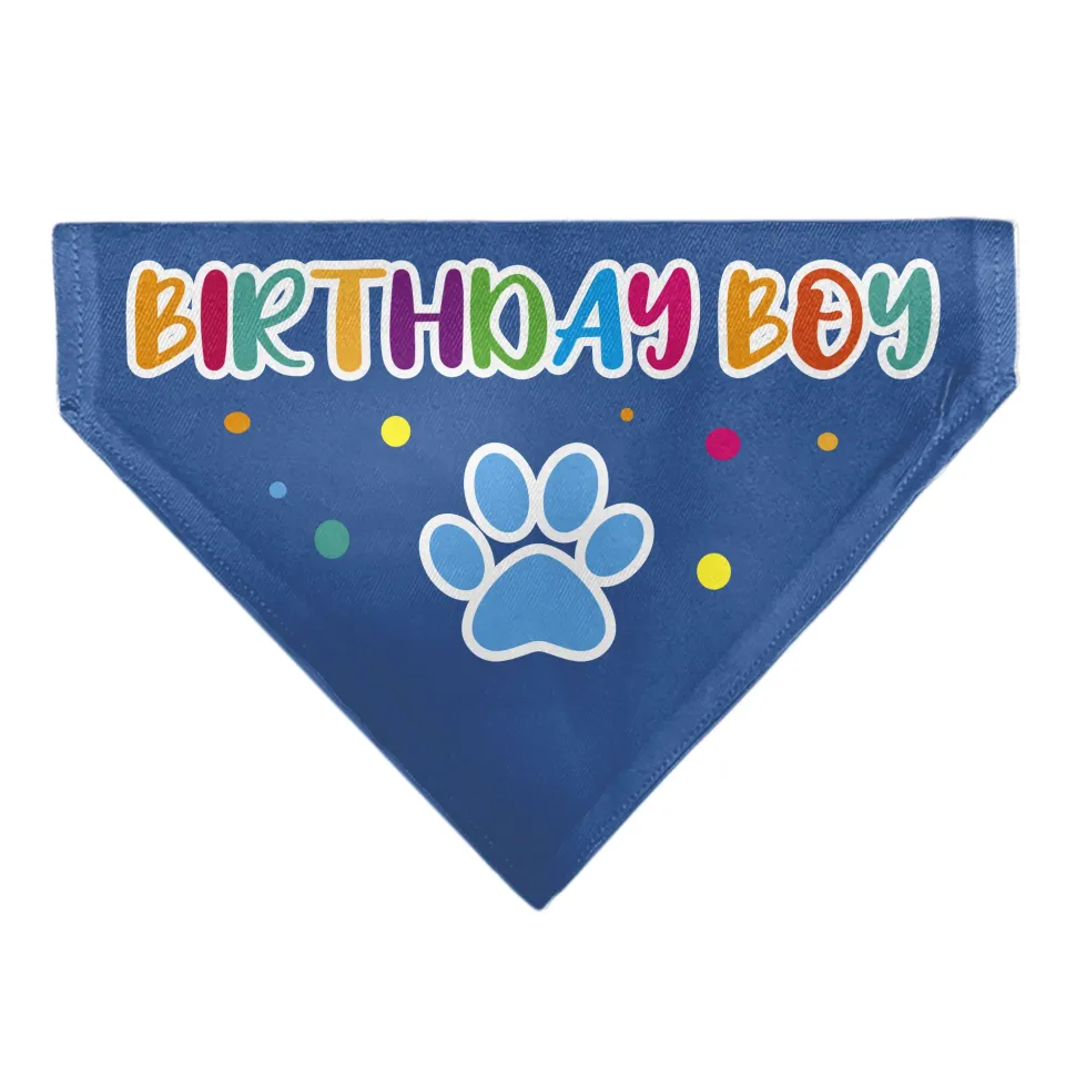 Pet Bandana - BIRTHDAY BOY Text Paw and Confetti Blue/Multi Color