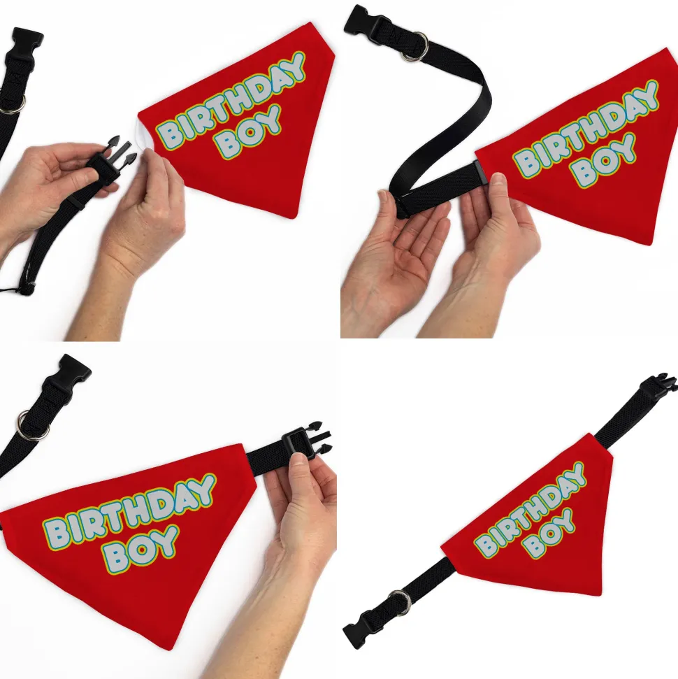This fun and unique pet bandana is the cutest accessory for your pup! It slips right onto your dog’s 1-inch wide collar perfectly, so there are no troublesome knots that can come loose. Just slide your dog’s existing collar through the opening of the bandana and clip the collar closed for a comfortable fit.