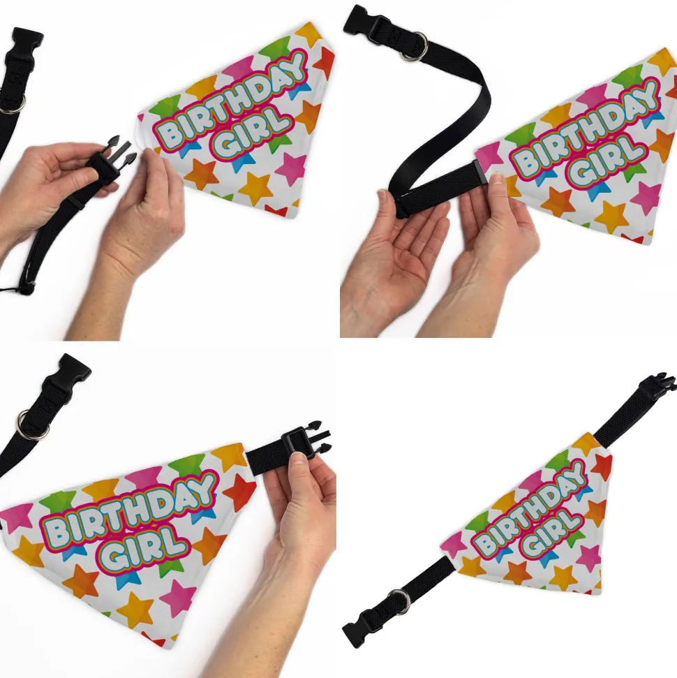 Pet Bandana - BIRTHDAY GIRL Text and Stars White/Multi Color