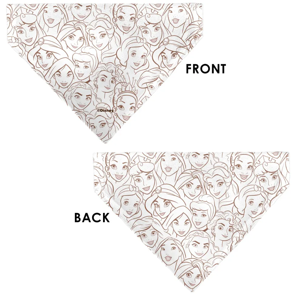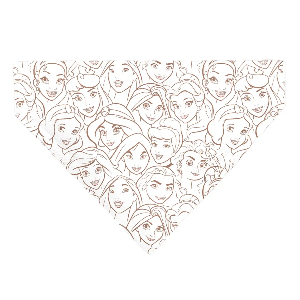 Pet Bandana – Disney Princess Faces Stacked White/Brown